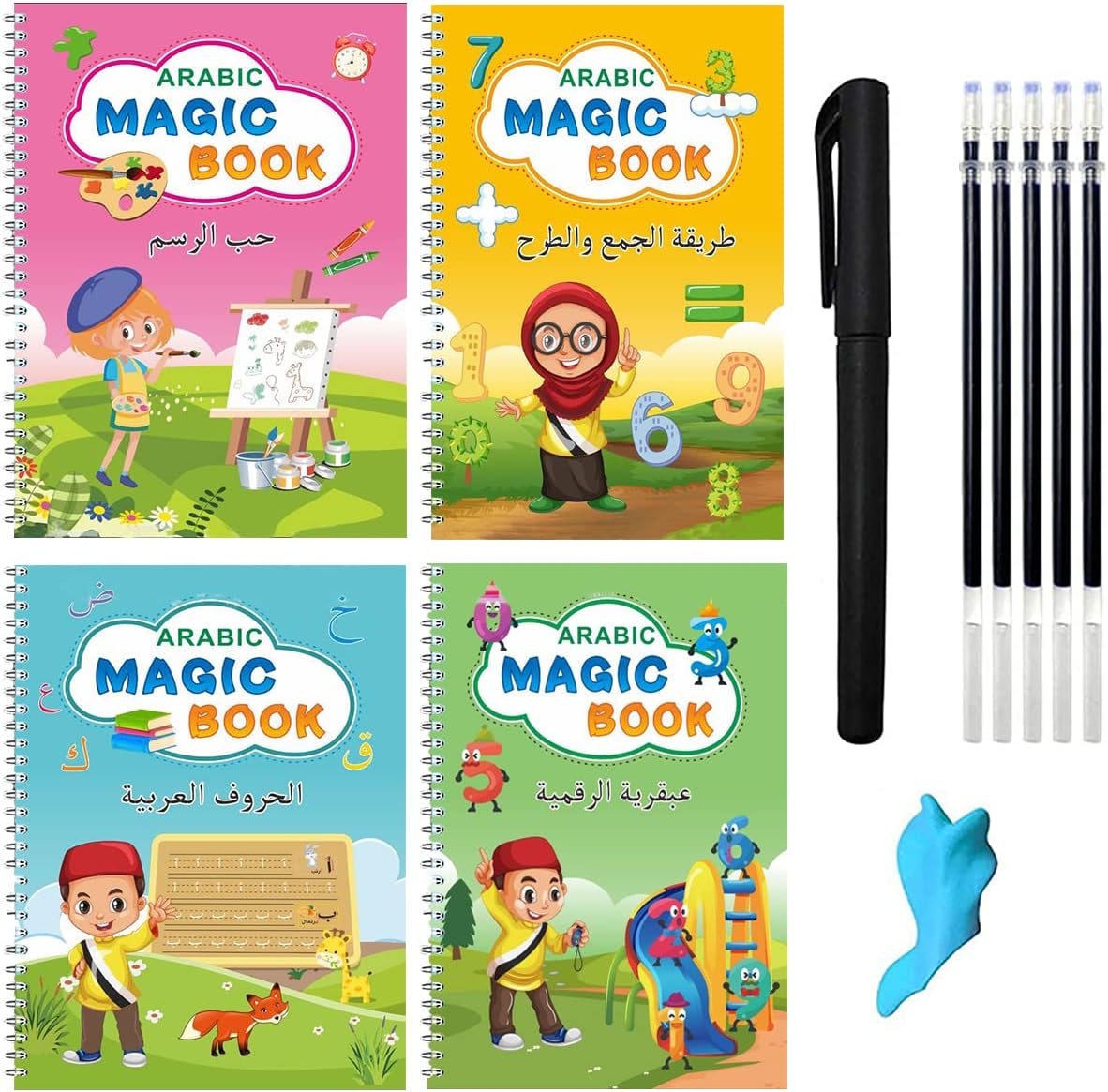 Varje kit innehåller pennor med magiskt bläck som bleknar bort efter 10 minuter – så ditt barn kan öva flera gånger på samma sida. Inget behov av utskrifter eller nya böcker varje vecka.