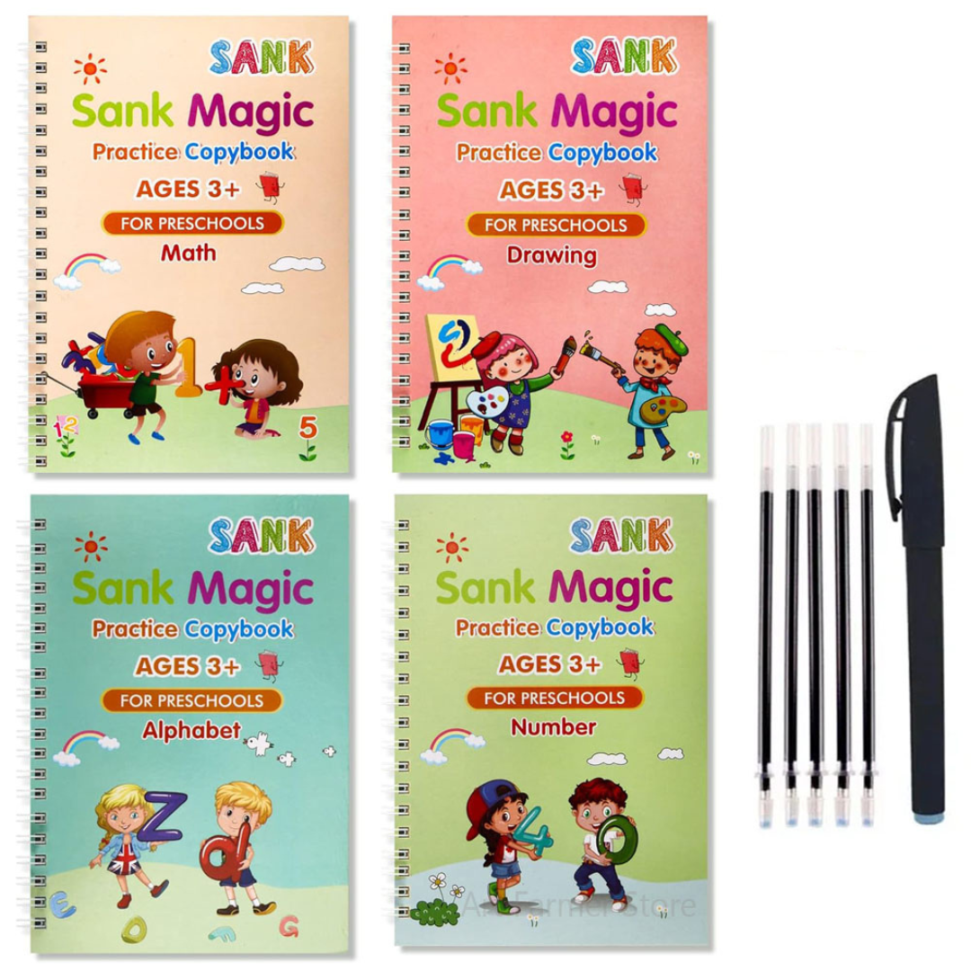 Varje kit innehåller pennor med magiskt bläck som bleknar bort efter 10 minuter – så ditt barn kan öva flera gånger på samma sida. Inget behov av utskrifter eller nya böcker varje vecka.