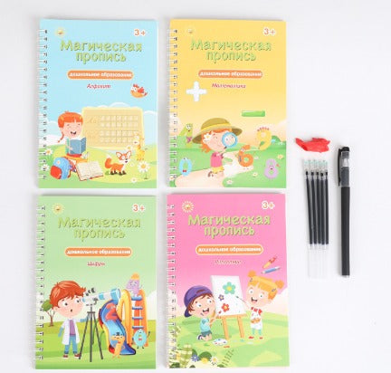 Varje kit innehåller pennor med magiskt bläck som bleknar bort efter 10 minuter – så ditt barn kan öva flera gånger på samma sida. Inget behov av utskrifter eller nya böcker varje vecka.